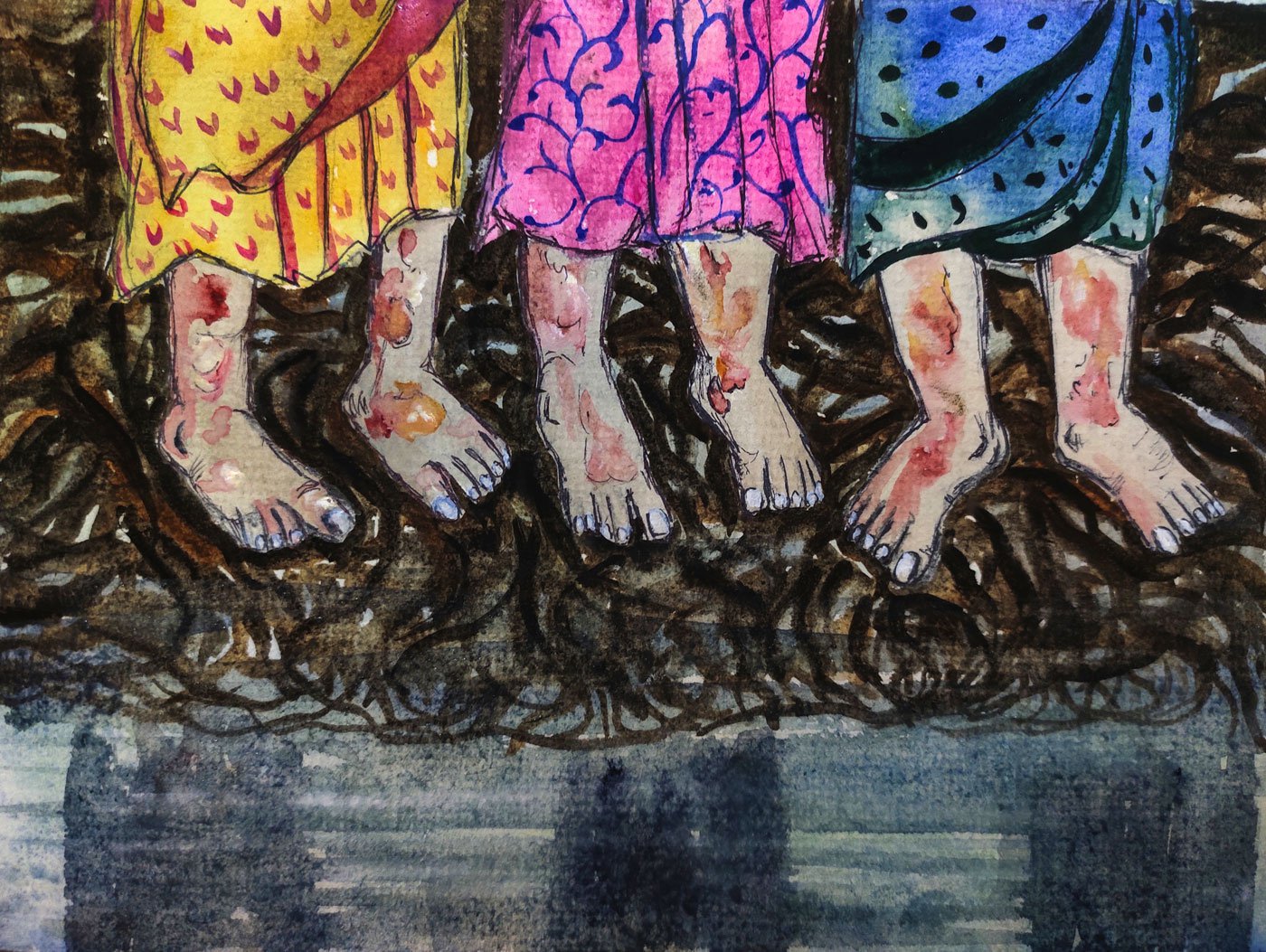 मीनू के जगा ले 3 कोस ले घलो कम दूरिहा रजत जुबिली गांव के बासिंदा 51 बछर के आलापी मंडल अपन एक अइसने कहिनी ला कहिथें. “तीन धन चार बछर पहिली, मोर घलो चमड़ी मं भारी तेज खुजरी होय ला धरिस. ये अतक भयंकर रहिस के कभू-कभू त मवाद निकरे ला धरे. मंय कतको दीगर माईलोगन मन ला जनथों, जऊन मन ले इही दिक्कत ला झेले ला परिस. एक बखत हमर गांव अऊ तीर तखार के गाँव मन मं हरेक परिवार के कऊनो न कऊनो ला चमड़ी के ये रोग होय रहिस. डॉक्टर ह मोला बताय रहिस के ये एक किसिम के वायरस आय.”