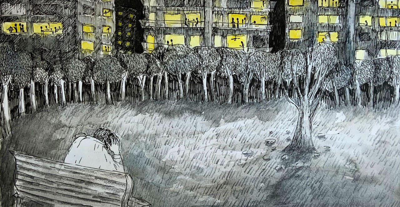 ಅತ ಸಂಜೆಯಾದರೆ ನಿರ್ಜನ ಉದ್ಯಾನವನಕ್ಕೆ ಹೋಗುತ್ತಿದ್ದ. ಒಂದು ಸಣ್ಣ ಫೋನ್ ಮತ್ತು ಕೈಯಲ್ಲಿ ದೊಡ್ಡ ಕೋಲು ಹಿಡಿದುಕೊಂಡು ಅಲ್ಲಿಯೇ ಬೆಂಚಿನ ಮೇಲೆ ಕುಳಿತುಕೊಳ್ಳುತ್ತಿದ್ದ. ಒಂದು ವರ್ಷದೊಳಗೆ ಎರಡನೇ ಬಾರಿಗೆ, ಆ ಉದ್ಯಾನದಲ್ಲಿ ವಿಚಿತ್ರ ಮೌನ ನೆಲೆಯಾಗಿತ್ತು. ಮಕ್ಕಳು ಮತ್ತು ವೃದ್ಧರು ಮತ್ತೊಮ್ಮೆ ತಮ್ಮ ಮನೆಗಳಲ್ಲೇ ಉಳಿದು ಹೋಗಿದ್ದರು.